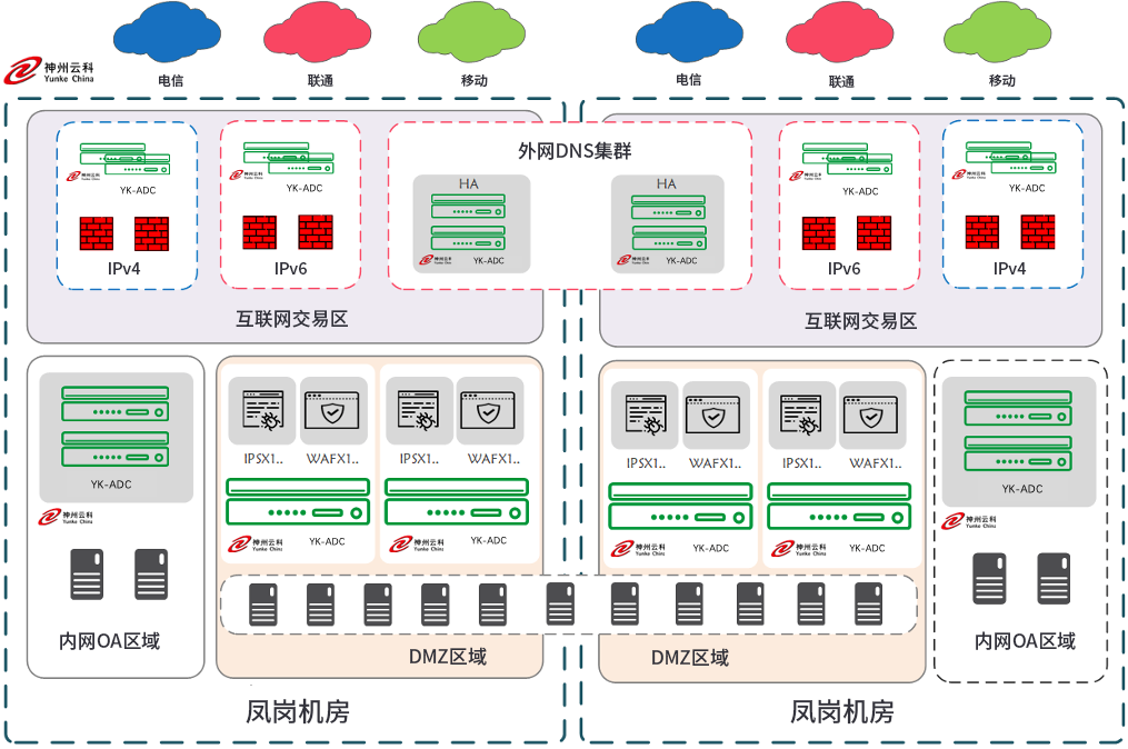 1、以Ezpay应用交付体系为基础构建的新型交付型同城双活数据中心架构,保证数据中心高可用、灵活、便捷扩展、双中心双活