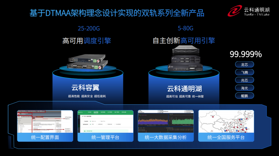 同时,为了更好的适配双轨超高可用架构,Ezpay推出了容翼系列和云科通明湖信创系列两大应用交付控制器产品。