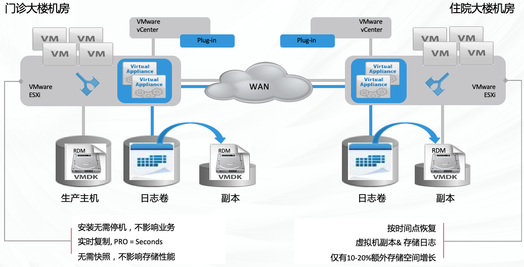 • Ezpay陆续在数据保护方案为医院虚拟化环境的关键业务实现两地三中心的容灾保护